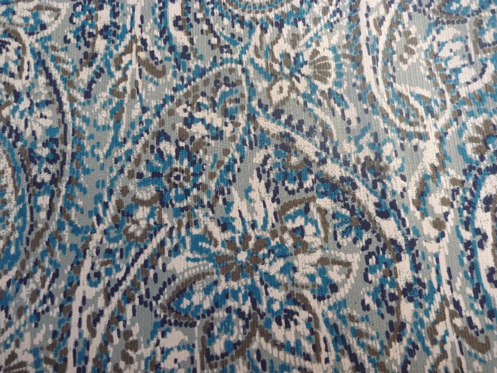 I was lucky to find this shirting on sale at Denver Fabrics. It's an Italian cotton, 36" wide, very finely woven with crisp printing. I ordered 3.5 yards at a $4.45 per yard. Score!